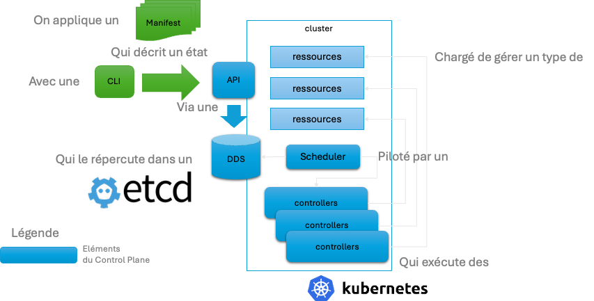 Le Control Plane n’est pas un serveur mais peut se distribuer et se scaler sur plusieurs serveurs, certaines fonctions du Control plane peuvent être des containers